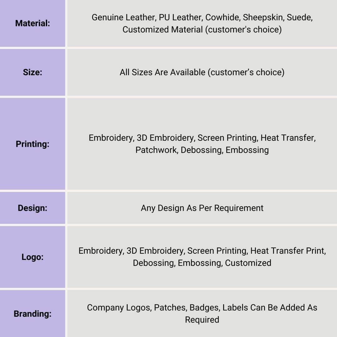 | Material | Genuine Leather, PU Leather, Cowhide, Sheepskin, Suede, Customized Material (customer’s choice) |